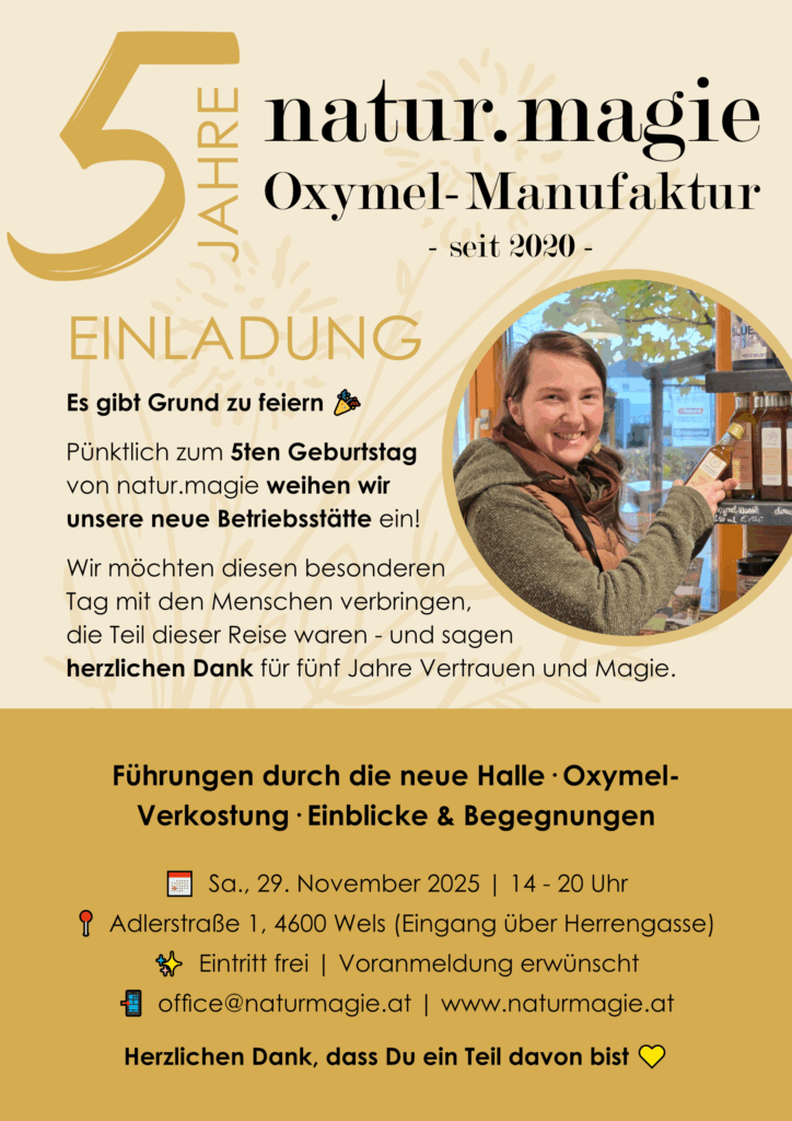 Es gibt Momente, in denen sich das Herz mit Dankbarkeit füllt – und dieser gehört dazu. Fünf Jahre natur.magie. Fünf Jahre voller goldener Tropfen, duftender Kräuter und Begegnungen mit Menschen, die an das Gute, das Echte und das Handgemachte glauben.